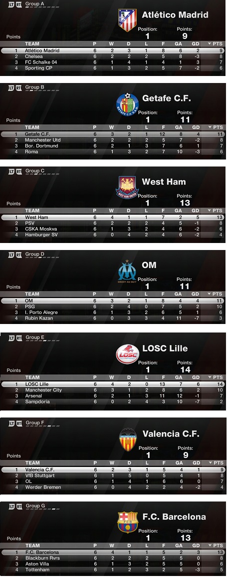 - Po výhre v Spanielskej legue s družstvom Sevilla FC V +M sme postúpili do Ligy Majstrovv skupinovej faze sa stretneme s družstvami :
